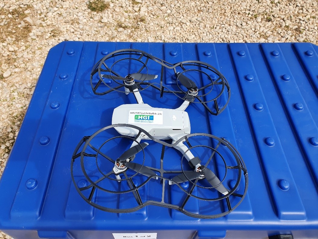 Bespilotne letjelice (engl. Unmanned Aerial Vehicle – UAV) su letjelice koje se mogu nadzirati na daljinu ili letjeti samostalno, uporabom unaprijed programiranog plana leta ili pomoću složenih autonomnih dinamičkih sustava. Ultralagana letjelica (<250 g) tip DJI Mavic Mini Fly More Combo opremljena 12 MP kamerom i njome se može snimati let u trajanju od oko 30 minuta. Koristi se za fotografiranje terena, posebno za one koji su teško dostupni. Upravlja se mobilnim uređajem i aplikacijom DJI FLY, i njime može upravljati bilo koja osoba s osnovnim znanjem o korištenju bespilotnih letjelica.